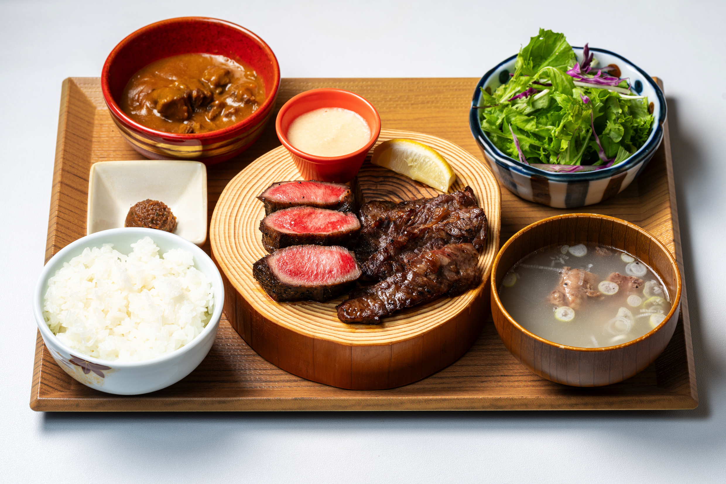 日本で圧倒的な人気を誇る、希少部位「たん元」を使用した“名物「極み」ステーキ”が、台北店でも提供されています。牛たんは「たん元」「たん中」「たん先」「たん下」の4種類に分かれ、牛1頭からわずか約1kg前後しか得られない希少な食材。その中でも全体の約20%しか取れない最高級部位「たん元」を、厚切りのステーキとして提供するのが【牛たんの檸檬】の代名詞です。