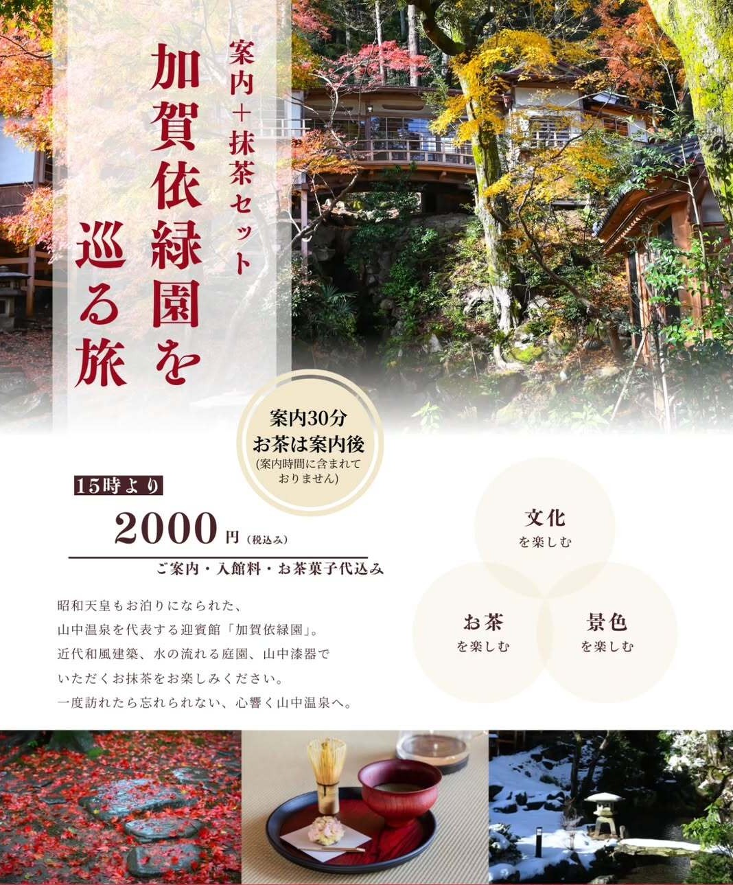 文化・景色・お茶―三つの魅力を通して、冬の加賀依緑園をゆったりと味わっていただける体験型企画。ぜひお楽しみください。